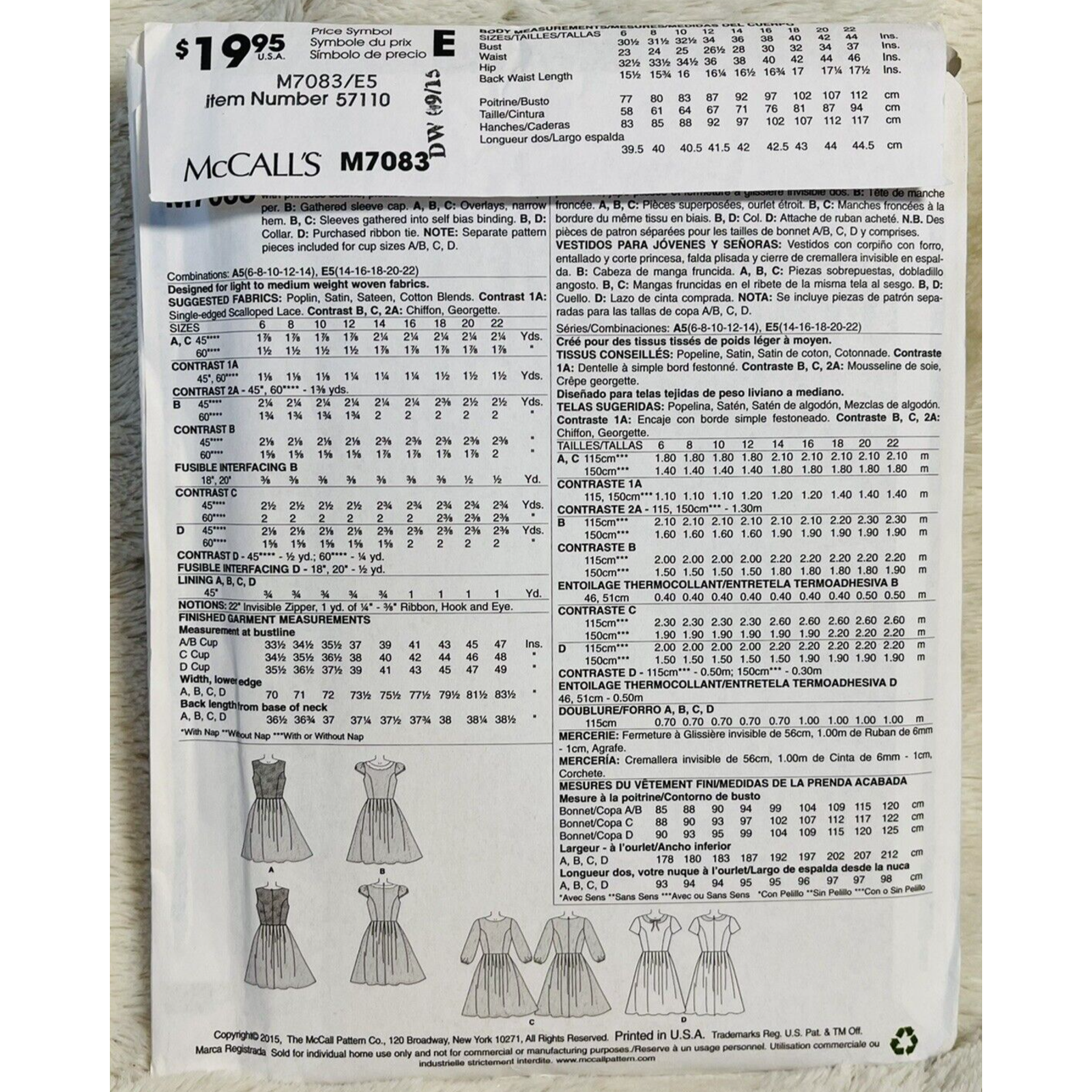 Sewing Pattern Mccall S M7083 Fitted Bodice Dresses 14 To 22 Uncut Plus Size Ebay